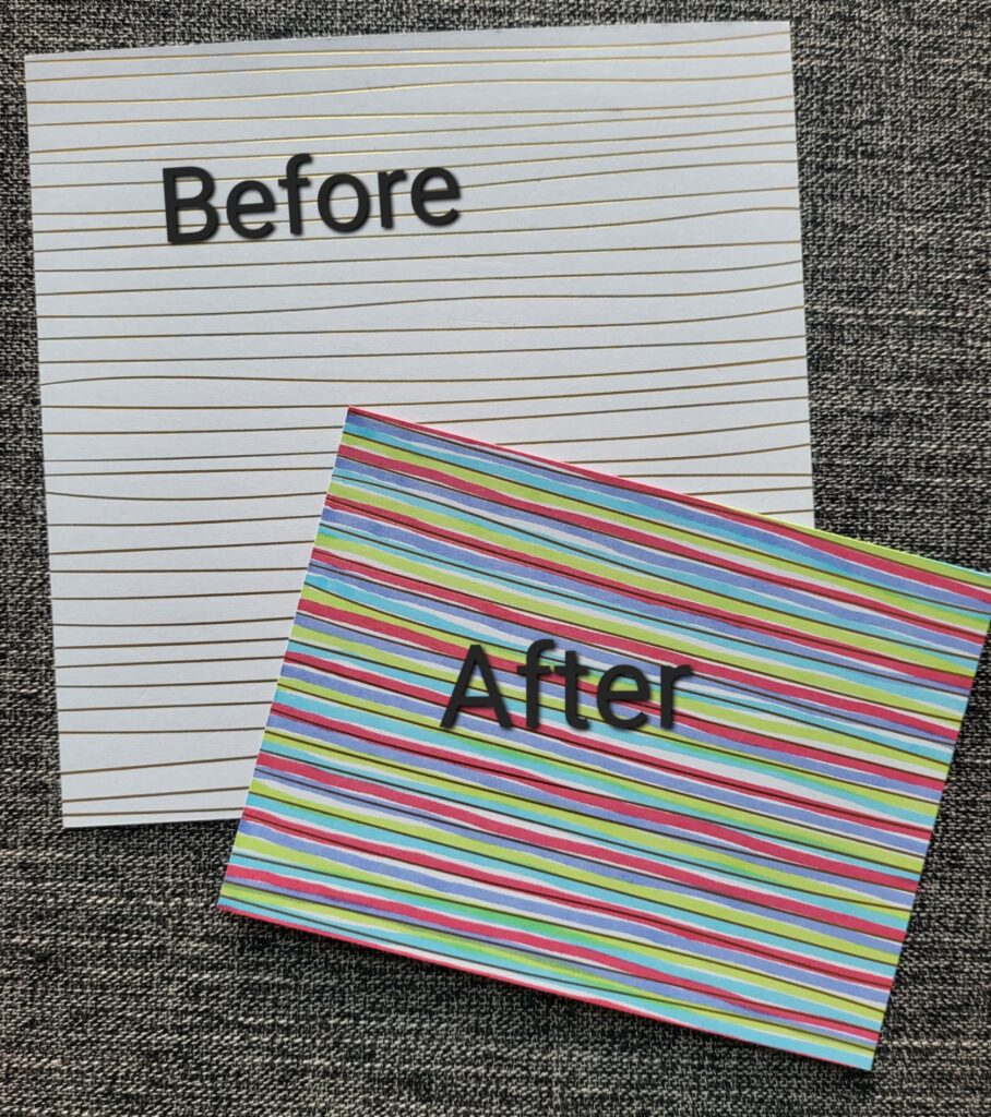 I just can’t get over how dramatic the change is. You can also use the same technique on the Basic White Cardstock. If you have a card in mind but your not really feeling the vibe on the combination of colors make your own!