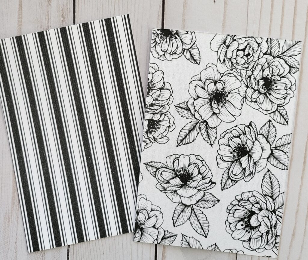 Below is the Black & White Flower DSP. I used a Blender Pen on this one. You drop one drop of ink from your refill bottle onto the lid of the corresponding ink pad or a silicone pad and pick up the color onto your blender pen. When you first color the flower it is pretty dark. The more you color the color will lighten up. So I did the outer edges of all the flowers first and then when my ink became lighter I colored inside of the flower.